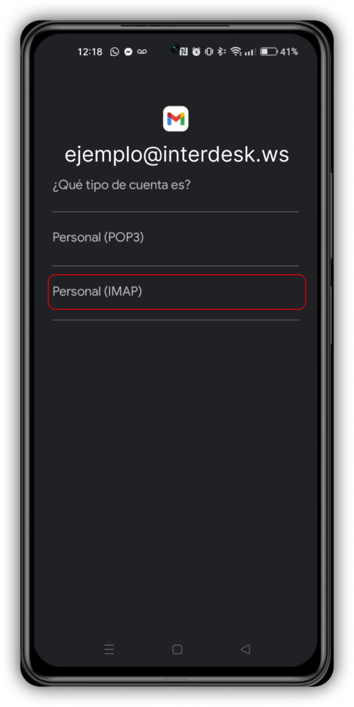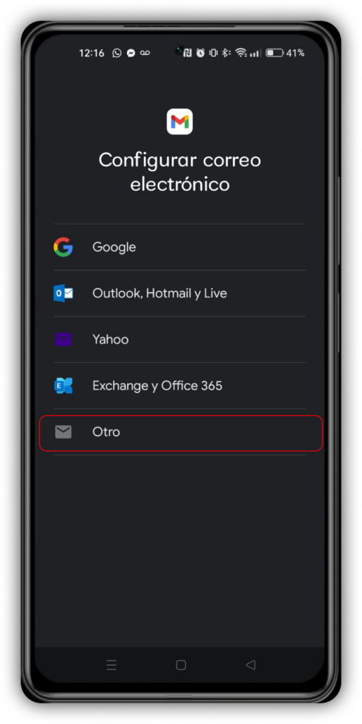 Escribe la cuenta de correo a configurar y tap en Configuración manual