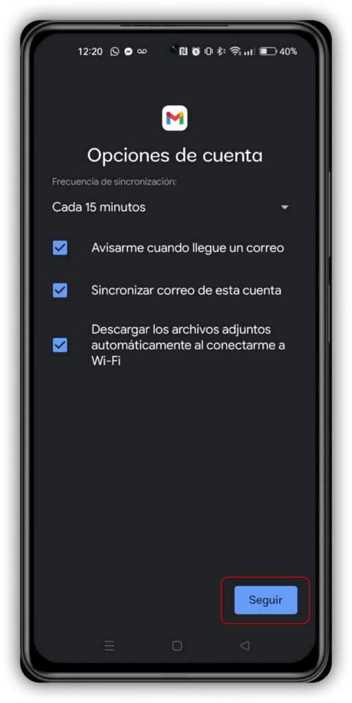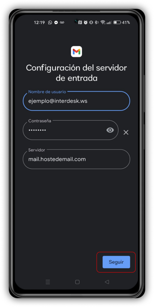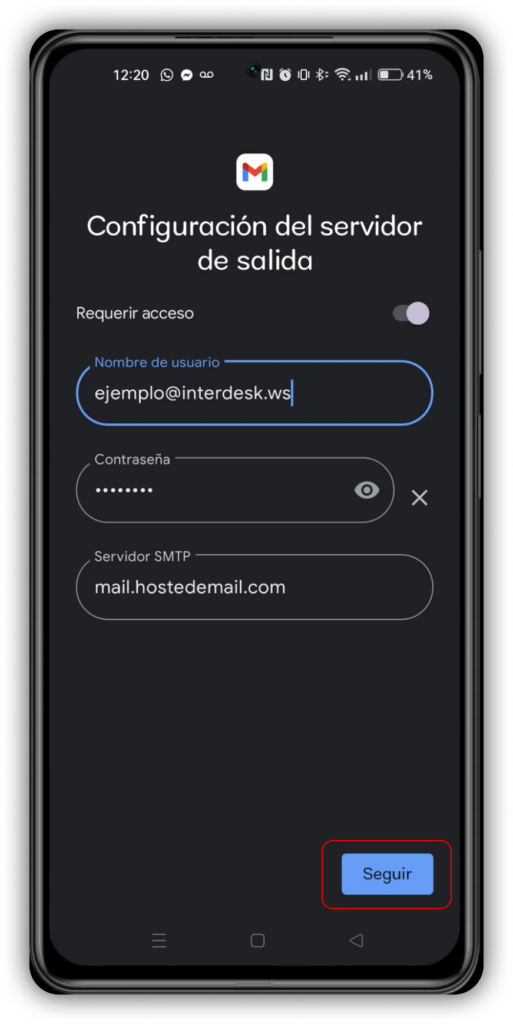 Nuevamente escribe mail.hostedemail.com en Servidor SMTP